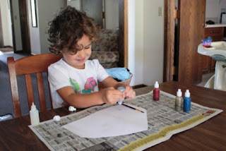 She got to use glitter glue, which my husband bought to make a monstrance craft. (Pictures from that will be coming soon). Whenever she wants to use the glitter glue, she asks to make a monstrance (which sounds a lot like a monster.)