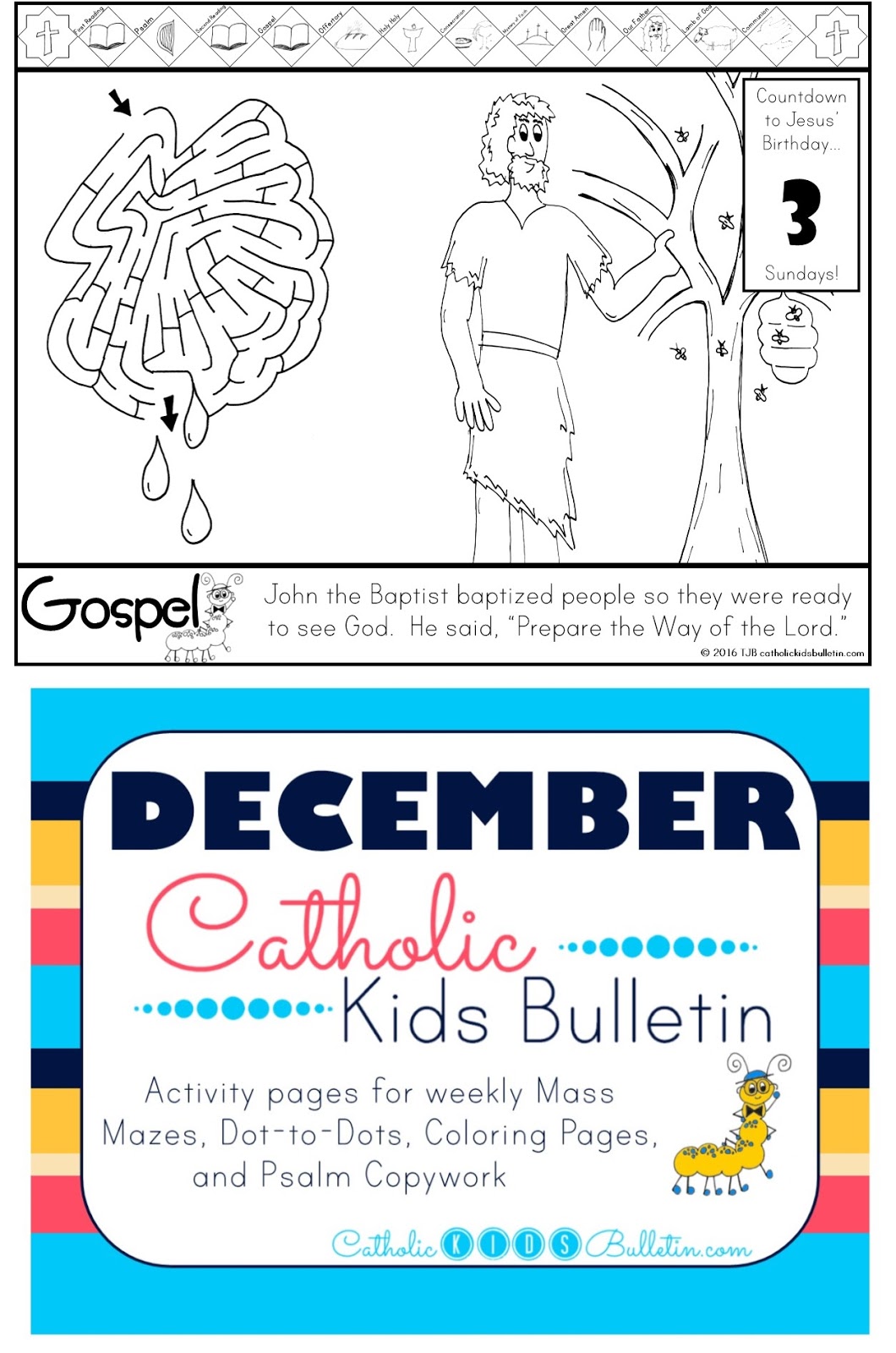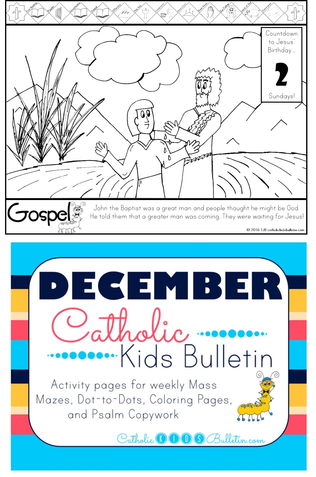 The Catholic Kids Bulletin worksheets match up to the weekly Mass readings in the Catholic Church. There are coloring pages, activities, Psalm copywork, and a Saint of the Week. These are designed to be used at Mass, or as a pre-teaching activity to help prepare your students for the Sunday Mass.