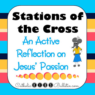 I did this Active Reflection on the Stations of the Cross with my kindergartners this week and I loved it! For each station, the kids would kneel for the “We adore you…you have redeemed the world” section, then when I would describe the station, they would stand in different poses to remind them of Jesus’ passion. They stand with arms out when Jesus accepts his Cross, then fall to the ground 3 times. They also kneel and reach out like Jesus’ mom and Veronica. My son STILL thought the stations were too long–but he did make it through the stations without complaining or falling apart, so that counts as success to me!