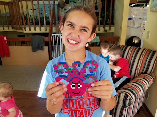 Mady has been working diligently. She made a spiderweb, a pencil, a rainbow, AND a Medusa.